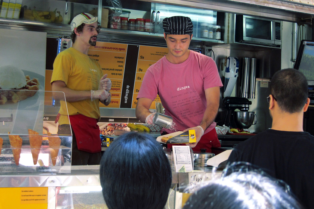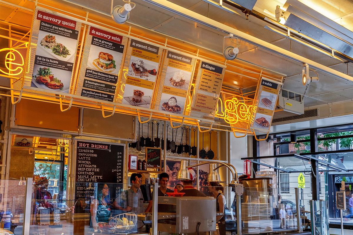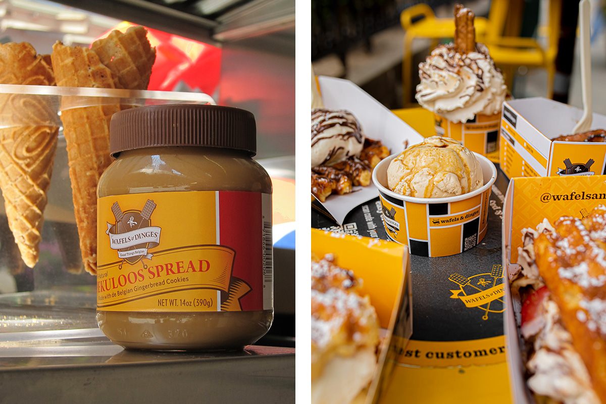 If you’re lucky, when walking down a street in New York you may get a whiff of delicious, buttery, golden brown, baked dough waffles slathered in dark chocolate or whipped cream or ice cream or pearl sugar or strawberries—or all of the above! If you’re even luckier, you’ll have time to eat one. These are Belgian waffles, a part of Belgian street food and restaurant culture. When the Belgian founder of the company approached us for help with the brand voice—from design to copy—we were in. Distilling a wealth of cultural information down to the essentials, Skaggs embraced traditional Belgian symbols, including bicycles, the national flag, and coats of arms, creating a bright, cheerful, and immediately recognizable design. The result is playful and mouthwatering—and a solid truth in advertising.